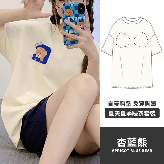 夏天睡衣 多款可選 夏季睡衣 帶胸墊可當家居服 大尺碼女生短袖睡衣套