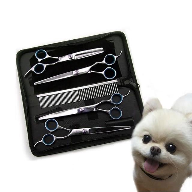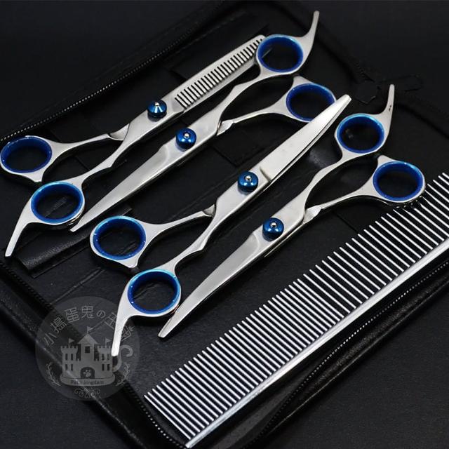 小搗蛋鬼の王國 寵物剪刀美容六件組(寵物剪刀美 髮剪組 美容剪毛 狗狗泰迪剪刀 彎練翹剪 修毛 清潔美容)