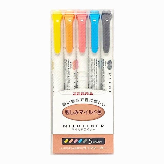 ZEBRA 斑馬牌ZEBRA斑馬 WKT7 MILDLINER雙頭柔性螢光筆-親和系5色組珊瑚粉/杏桃橘/檸檬黃/天空藍/深邃灰