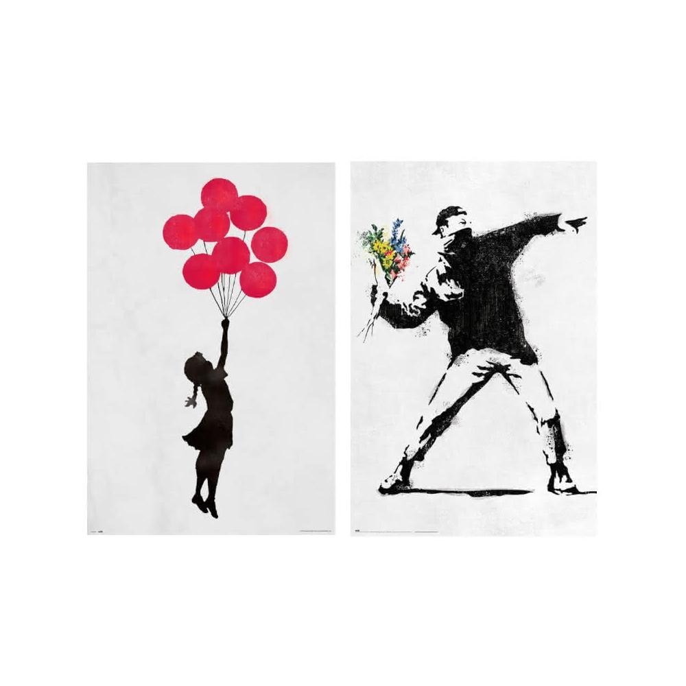 班克西Banksy 塗鴉藝術海報-氣球女孩/擲花者