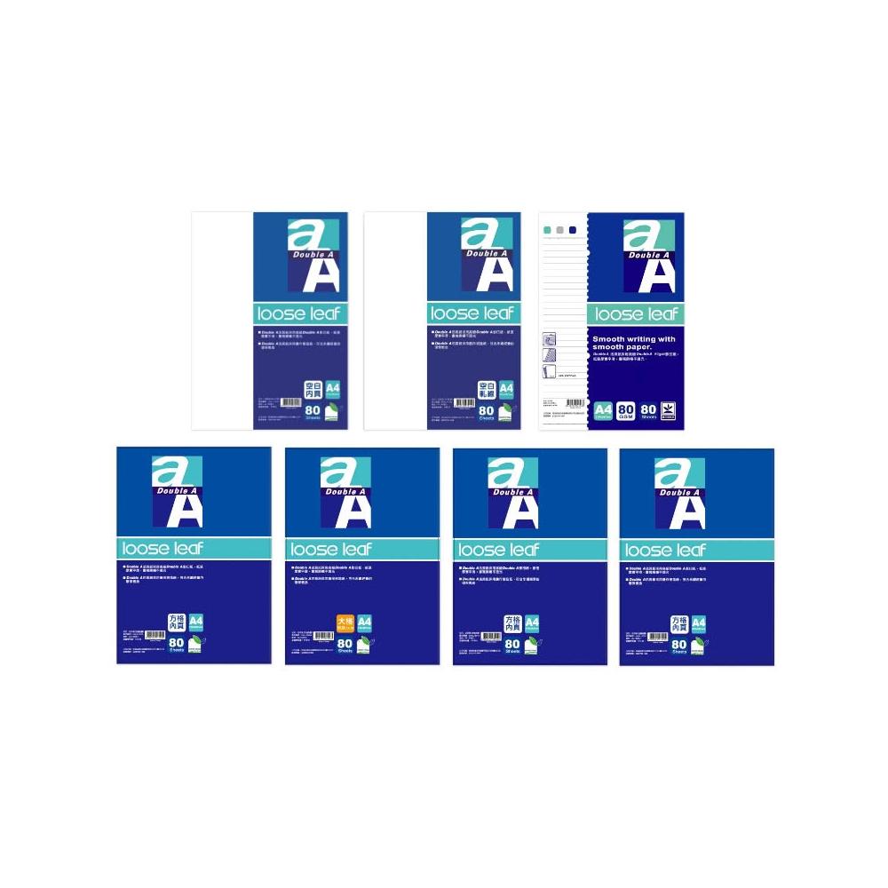 Double A活頁紙內頁 A4 (80張)-標準格線/空白軋線/空白/大格/兩段式/點點/方格