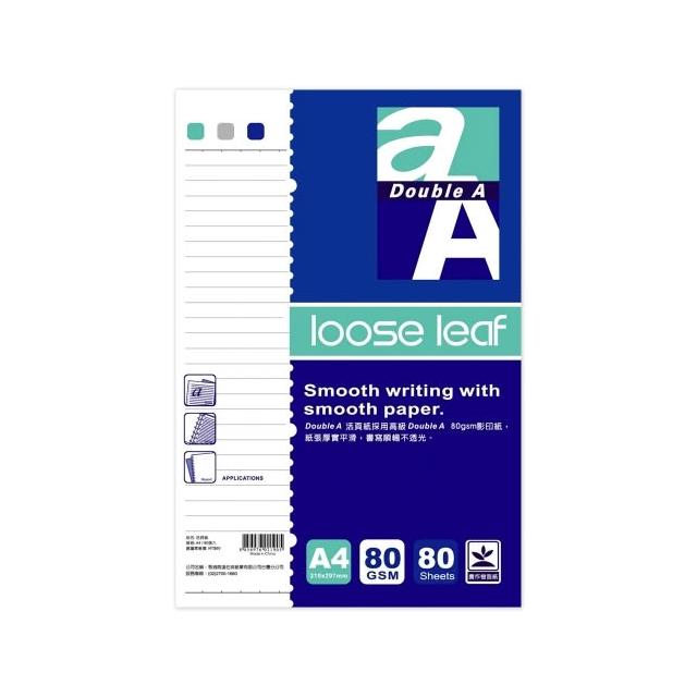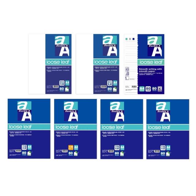 Double A活頁紙內頁 A4 (80張)-標準格線/空白軋線/空白/大格/兩段式/點點/方格