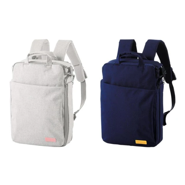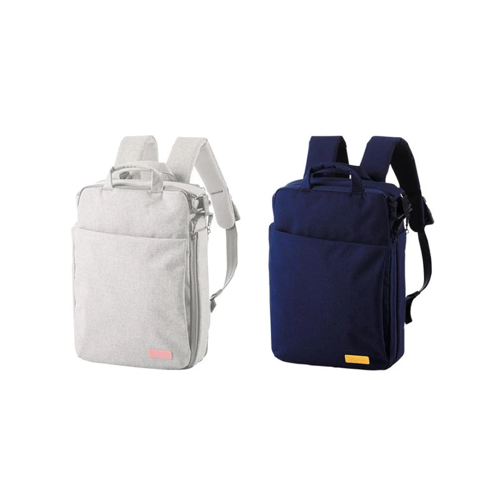 ELECOM帆布多功能 3WAY後背包-燕麥/深藍