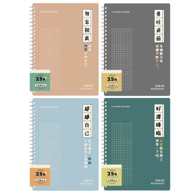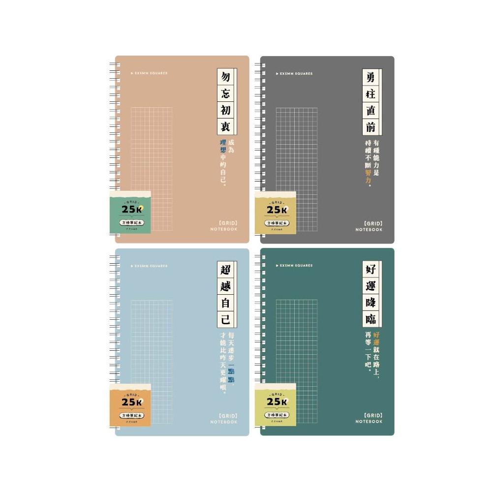 青青簡單生活 雙線圈方格筆記本 25K-暖棕/鐵灰/雅藍/青綠