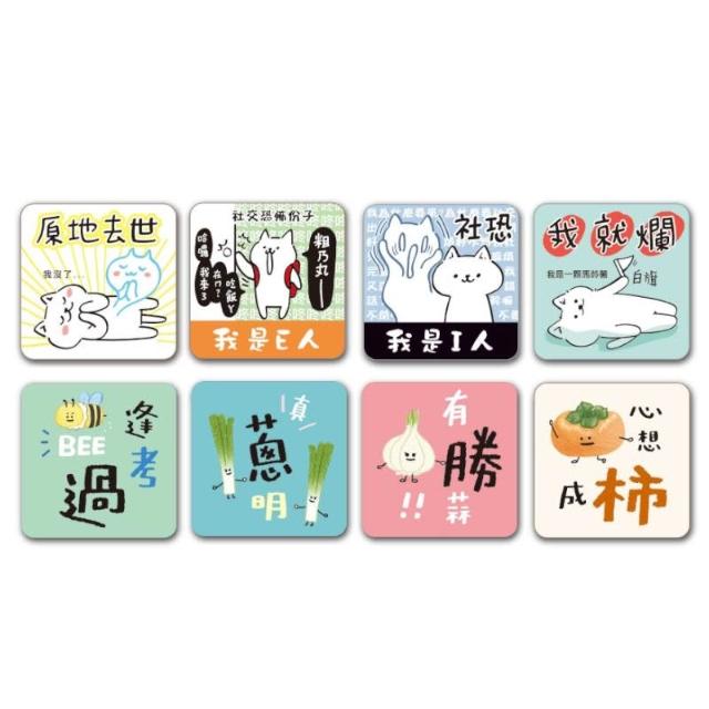 三瑩文具方形趣味貼紙-原地去世/我是E人/我是I人/我就爛/逢考Bee過/真蔥明/有勝蒜/心想柿成