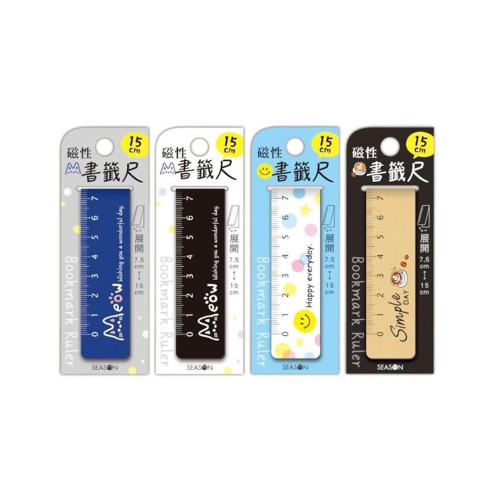 SEASON 四季紙品禮品磁性書籤尺 15cm-藍貓/黑貓/笑臉/咖啡