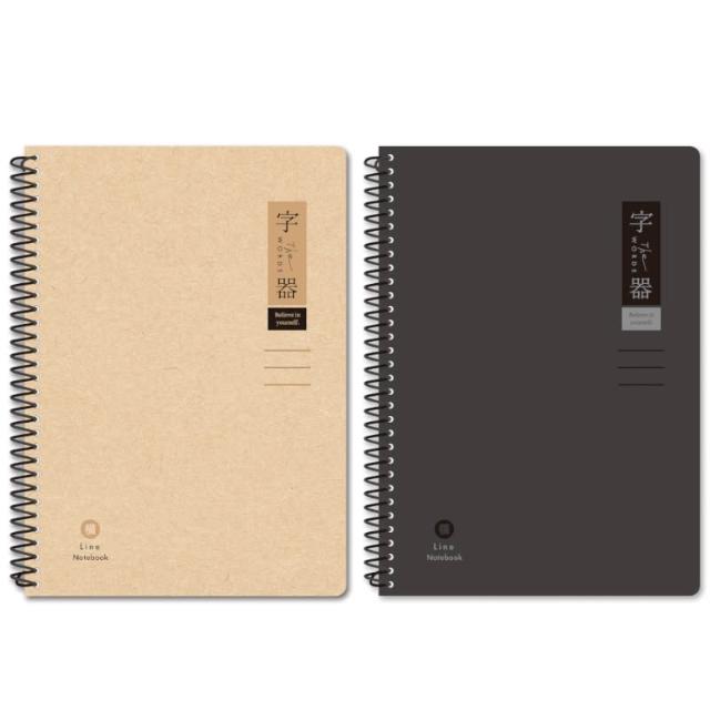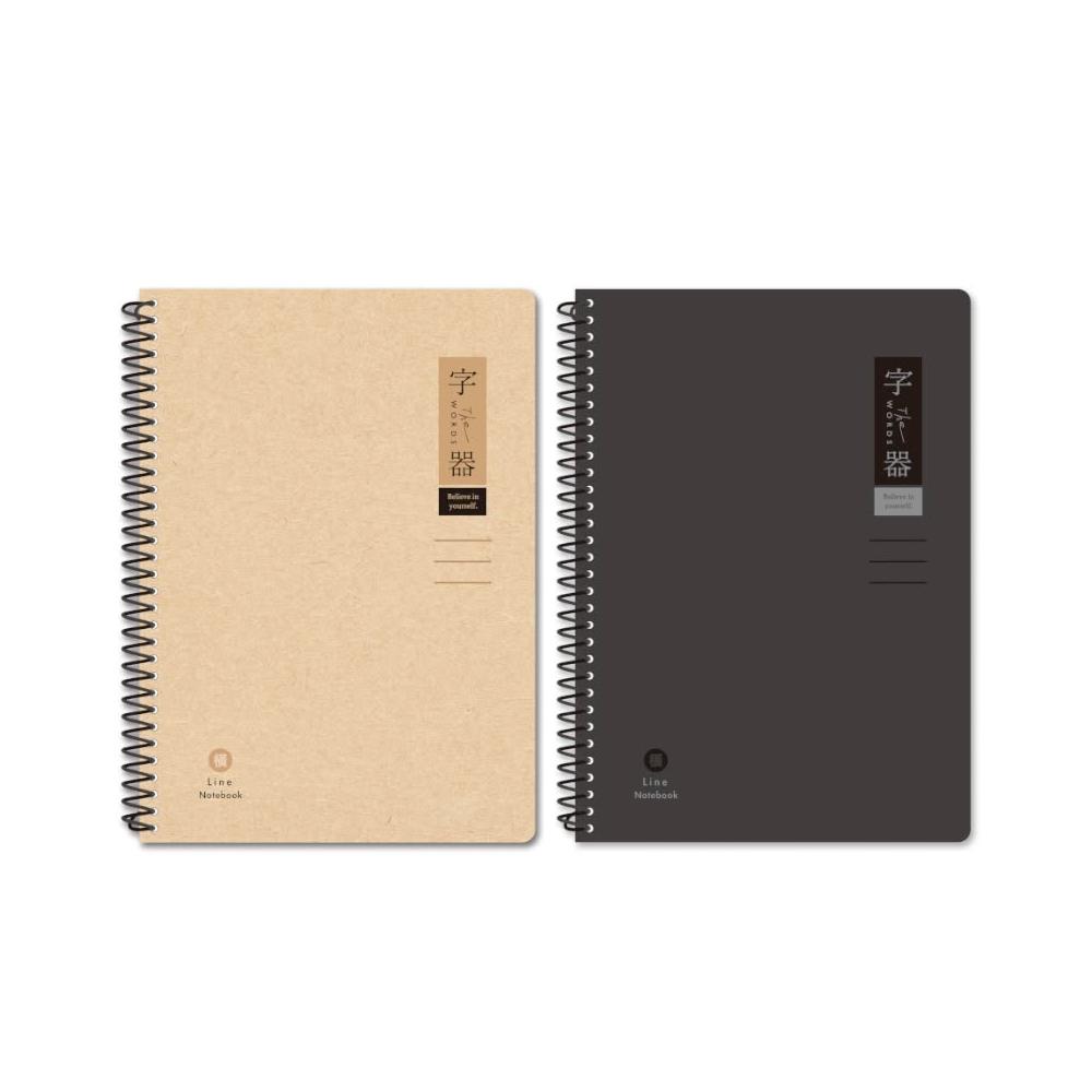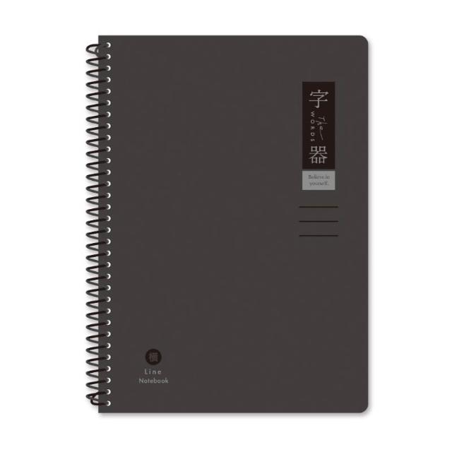 字器 橫線線圈筆記本 25K-牛皮/黑