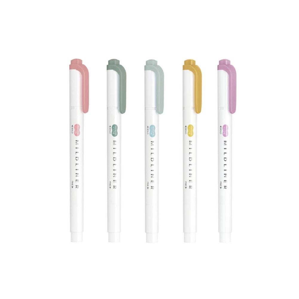 ZEBRA 斑馬牌Mildliner 雙頭柔性螢光筆 悠閒色系(WKT7)-紅紫/煙燻紅/含羞草黃/薄荷綠/苔蘚綠