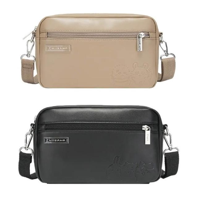 PG 美人網吉伊卡哇 皮革斜背包-黑色/咖啡