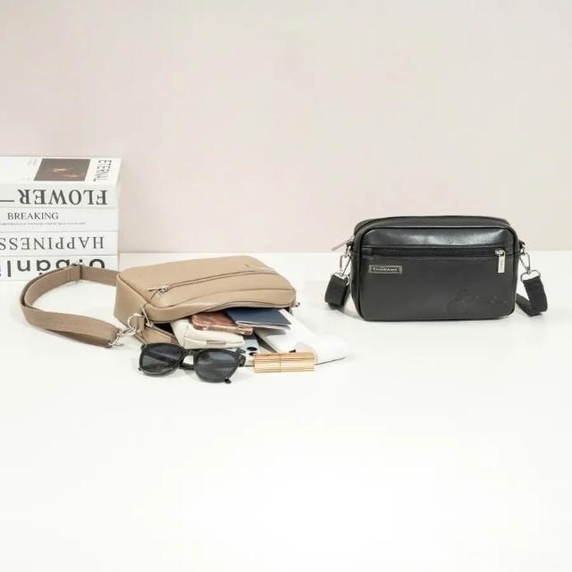 PG 美人網吉伊卡哇 皮革斜背包-黑色/咖啡