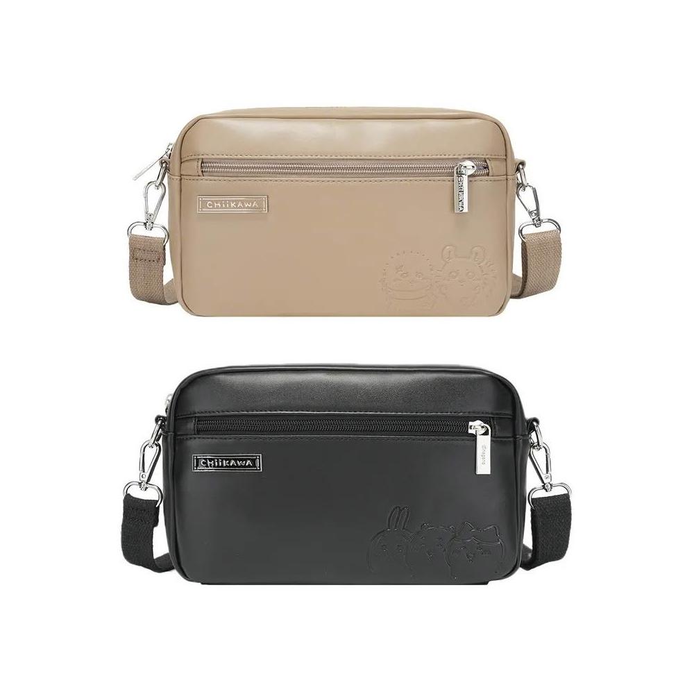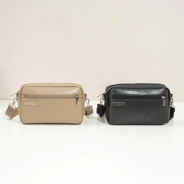 PG 美人網吉伊卡哇 皮革斜背包-黑色/咖啡