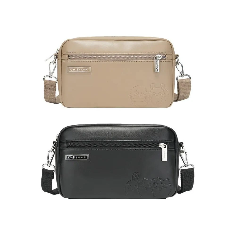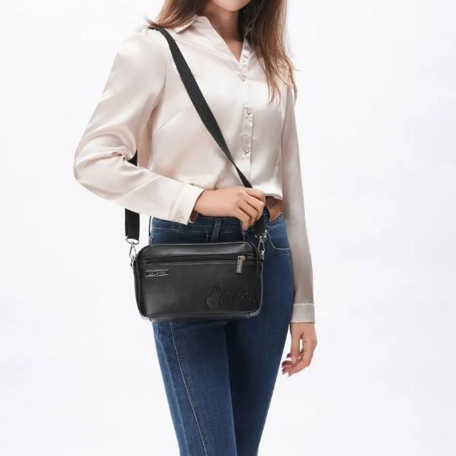 PG 美人網吉伊卡哇 皮革斜背包-黑色/咖啡