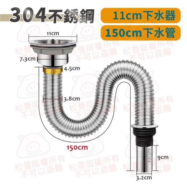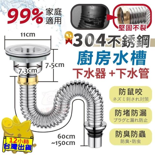 304不銹鋼 廚房水槽下水管 洗菜盆下水管 水槽下水管 洗碗池水槽下水器 下水管 下水器 防臭排水管 防鼠咬下水套組
