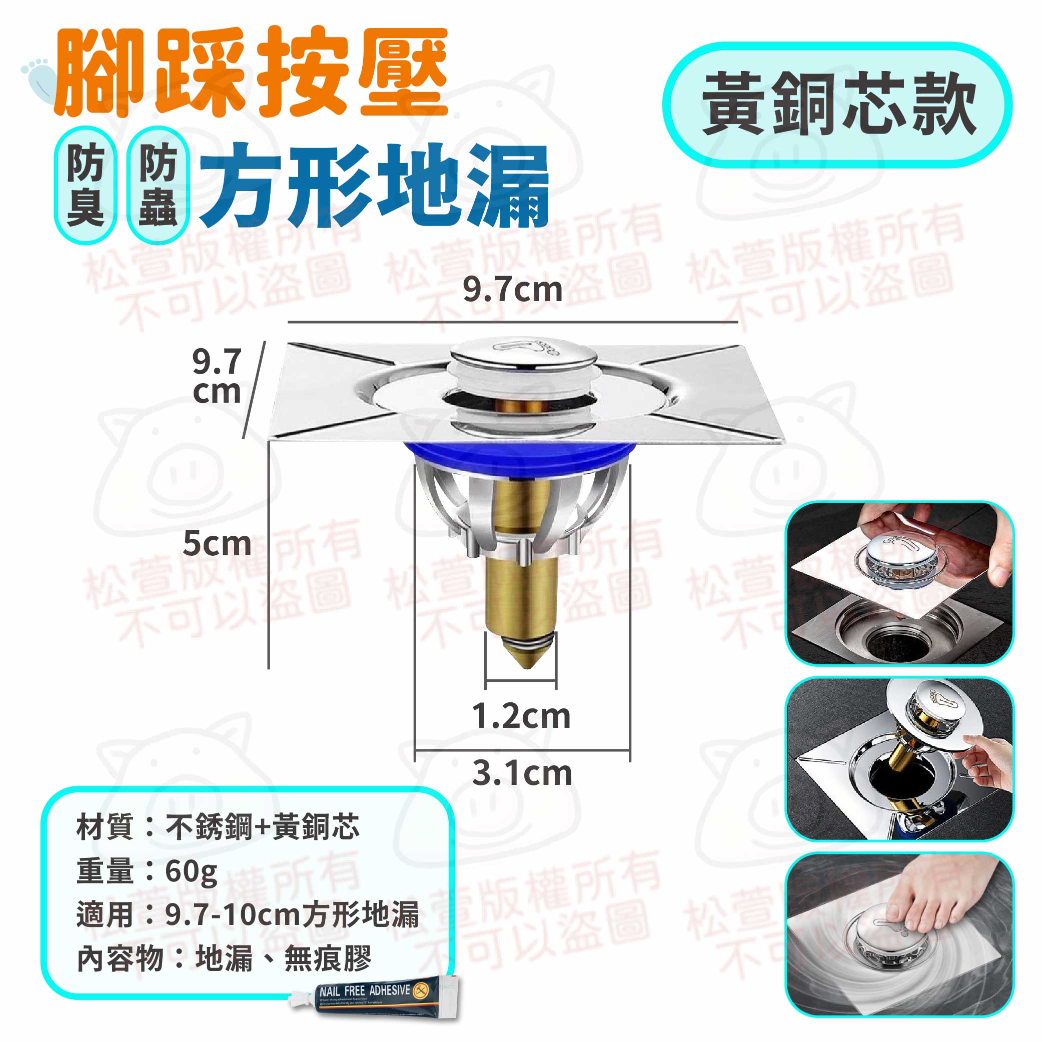 腳踩彈跳方形地漏按壓地漏 方形地漏蓋 地漏防臭防蟲 彈跳地漏芯 浴室地漏 廚房地漏 陽台地漏 下水道防堵 通用地漏