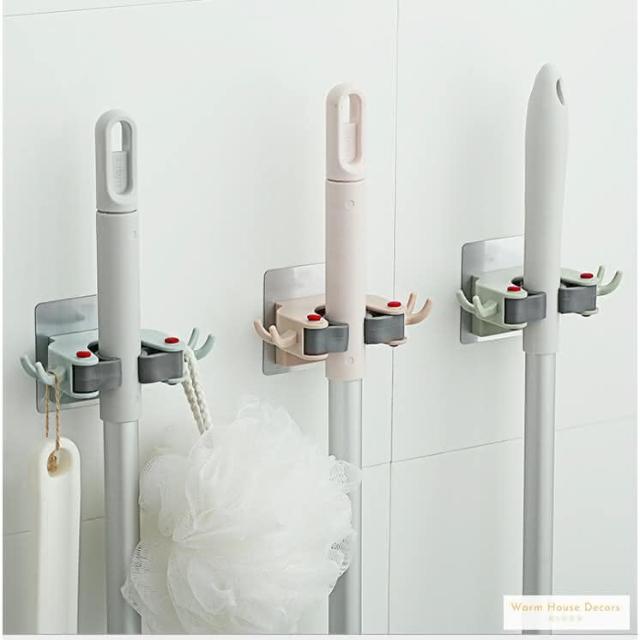 Warm House Decor 暖和家居北歐免釘無痕拖把架(拖把架 廁所浴室壁掛架 拖把架 收納架 拖把收納架 浴室收納架 陽台收納架)