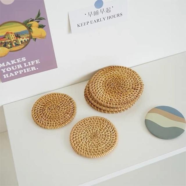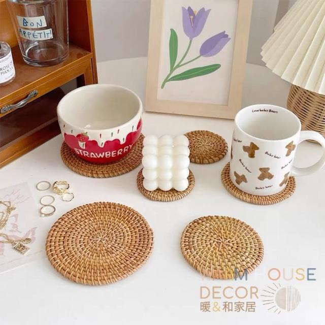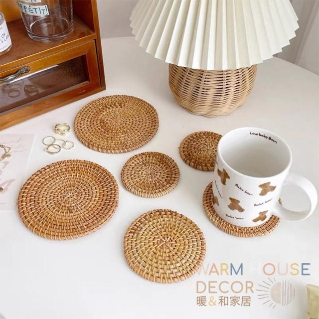 Warm House Decor 暖和家居藤編隔熱餐墊(編織環保墊 隔熱墊 餐墊 圓形餐墊 鍋墊 復古藤編杯墊 拍照道具 圓型杯墊 質感)