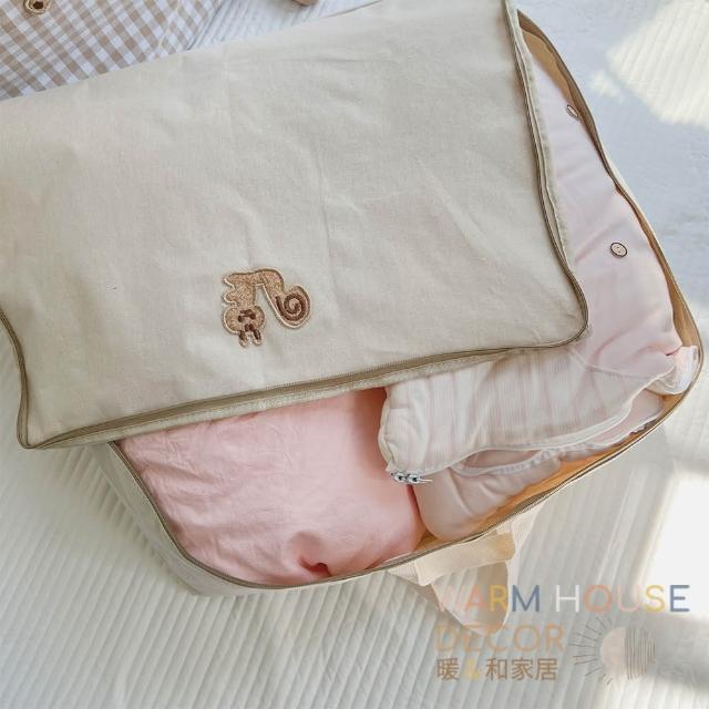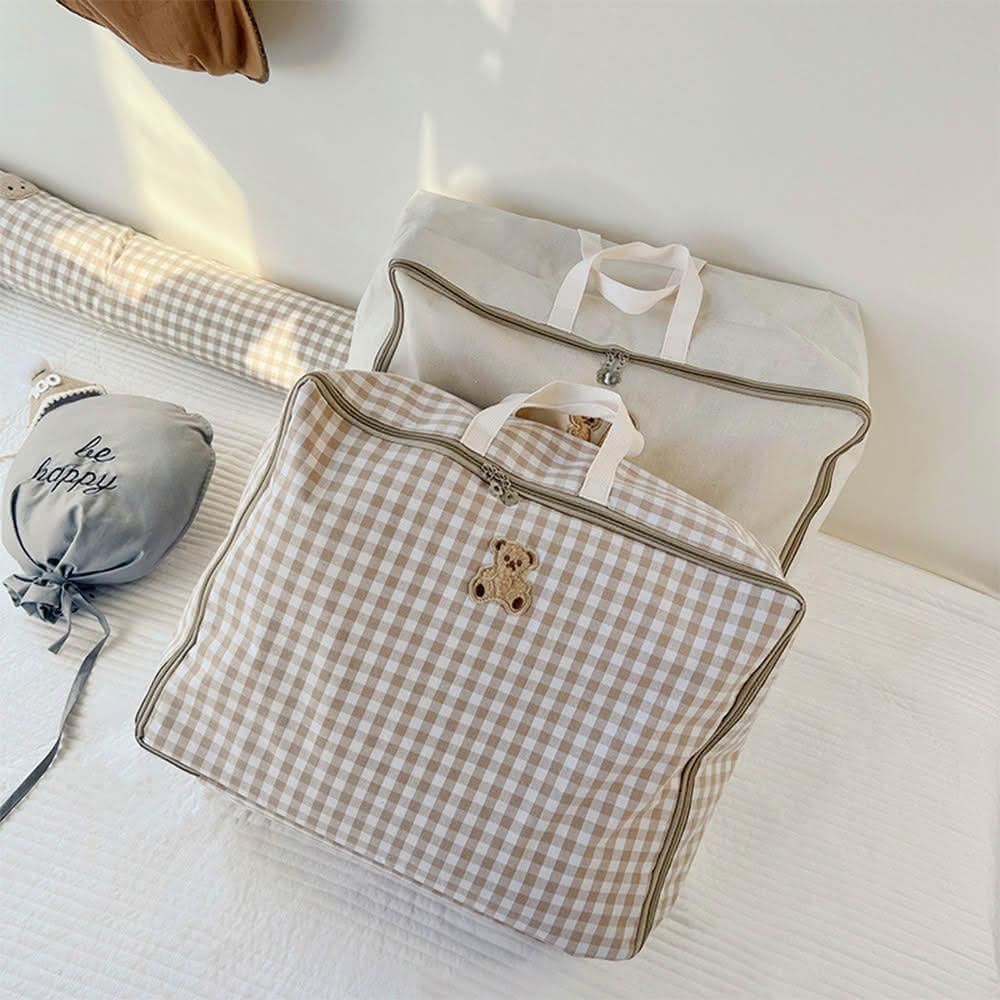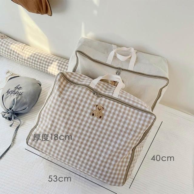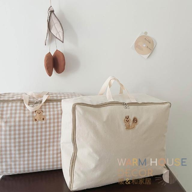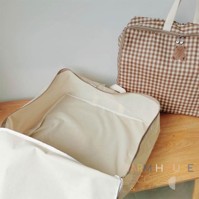 Warm House Decor 暖和家居韓系小熊方格收納袋 (旅行搬家袋 棉被收納袋 衣物收納袋 衣櫃收納袋 簡約收納袋 幼稚園棉被收納)