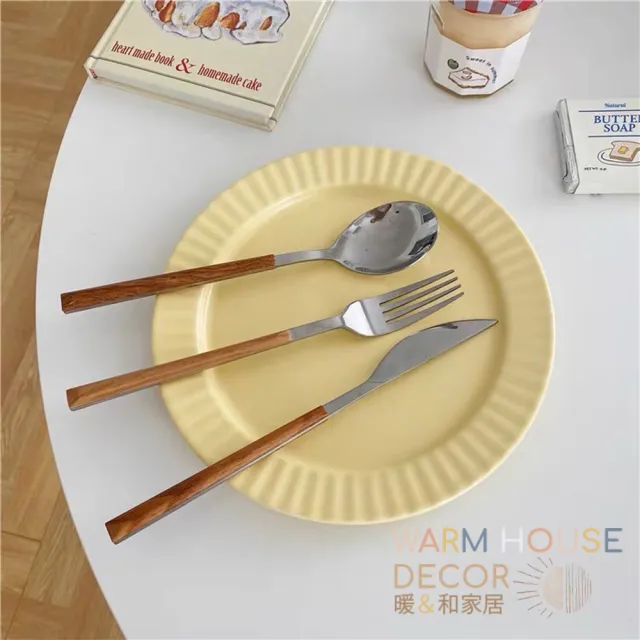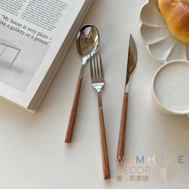 Warm House Decor 暖和家居韓系ins木質餐具(304不鏽鋼餐具 刀叉 刀子 叉子 湯匙 餐具 餐具組 西餐餐具 仿木柄不銹)