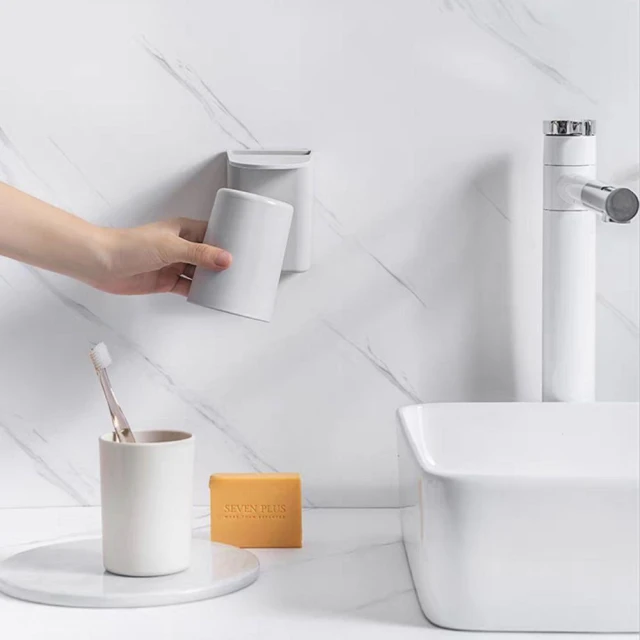 Warm House Decor 暖和家居壁掛磁吸漱口杯(牙刷杯架 漱口杯架 牙刷置物架 免打孔牙刷架 壁掛漱口架)