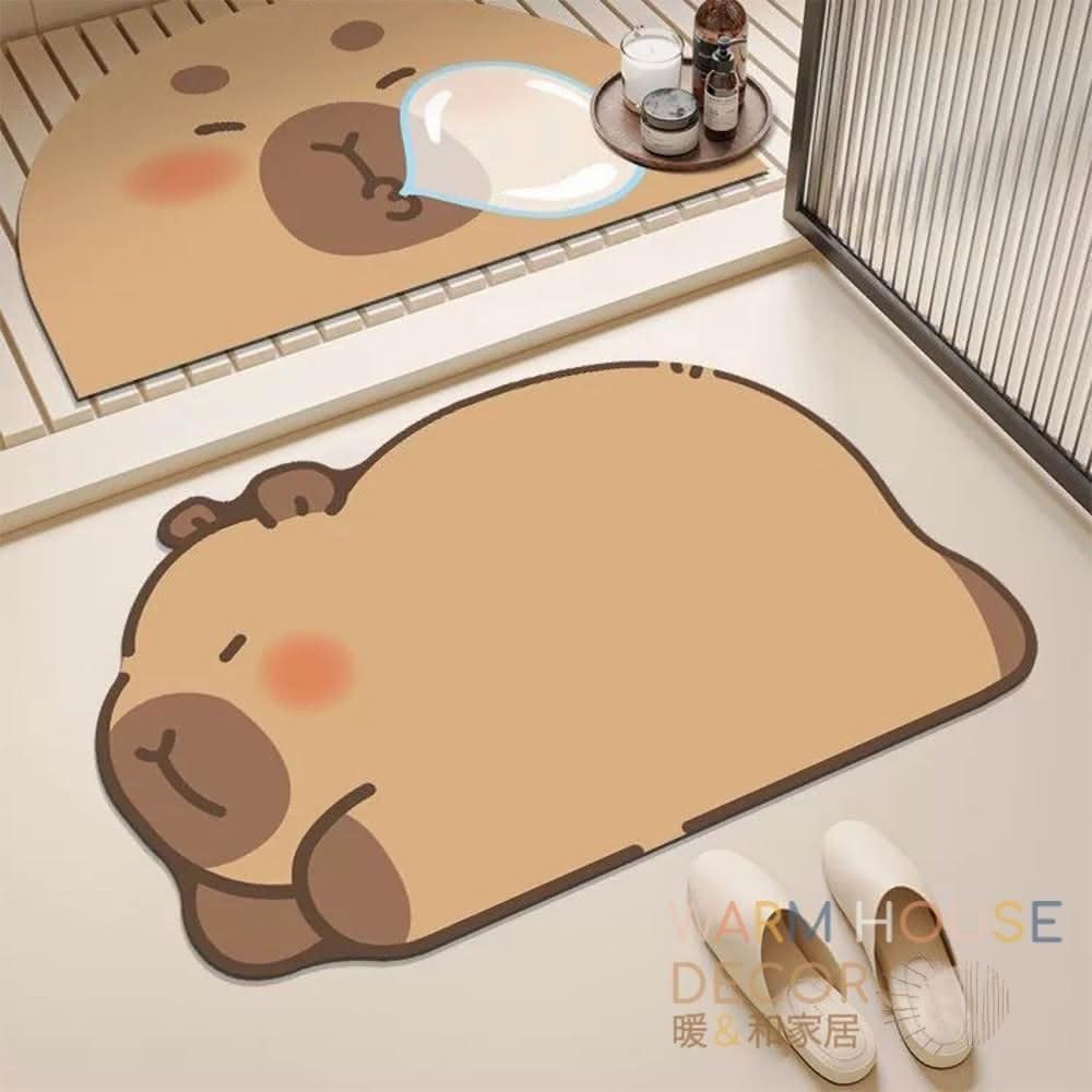Warm House Decor 暖和家居可愛水豚珪藻土地墊(硅藻土地墊 卡皮巴拉地墊 浴室地墊 吸水地墊 卡通地墊 浴室地墊 廚房地墊)