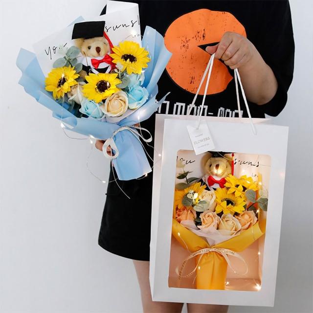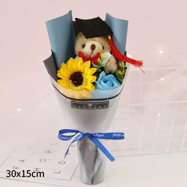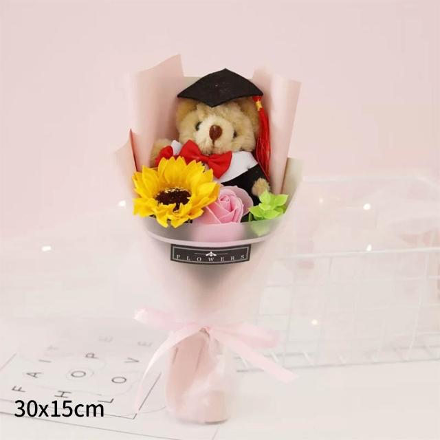 Warm House Decor 暖和家居向日葵小熊畢業花束 (學生畢業送禮 香皂仿真花 幼兒園畢業花束 小熊花束 向日葵花束 )