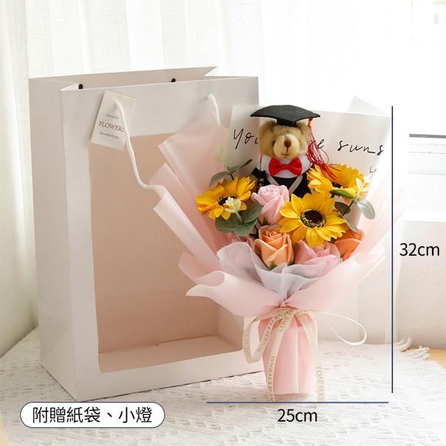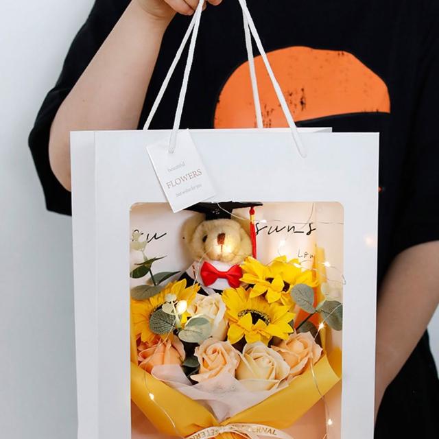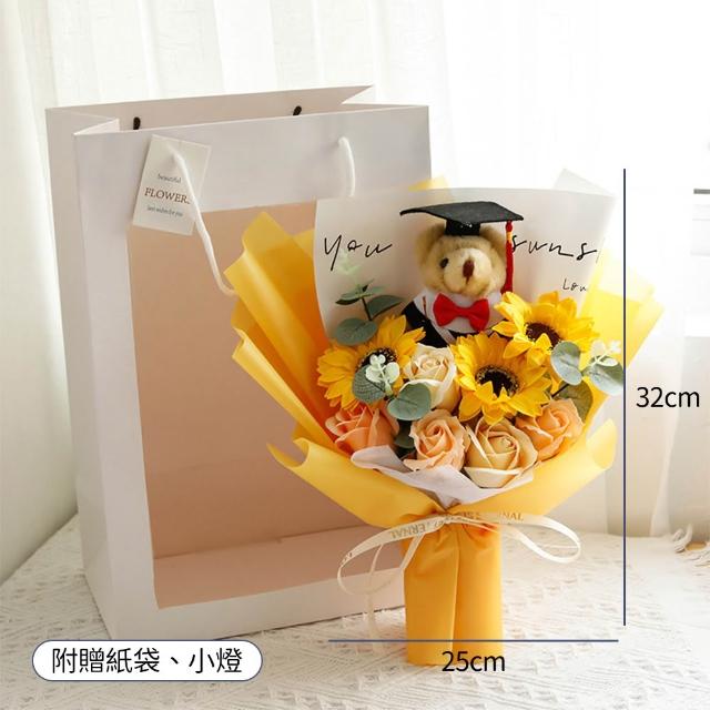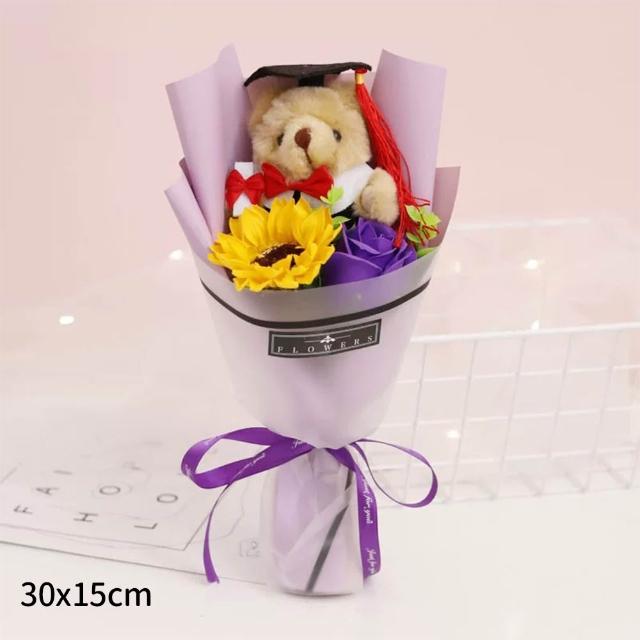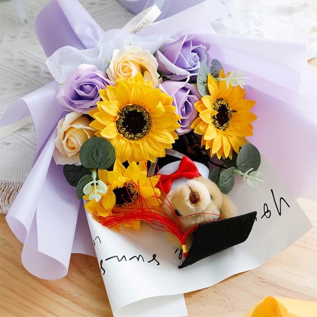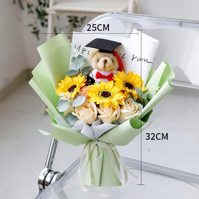 Warm House Decor 暖和家居向日葵小熊畢業花束 (學生畢業送禮 香皂仿真花 幼兒園畢業花束 小熊花束 向日葵花束 )