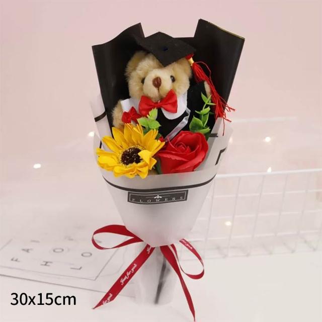 Warm House Decor 暖和家居向日葵小熊畢業花束 (學生畢業送禮 香皂仿真花 幼兒園畢業花束 小熊花束 向日葵花束 )