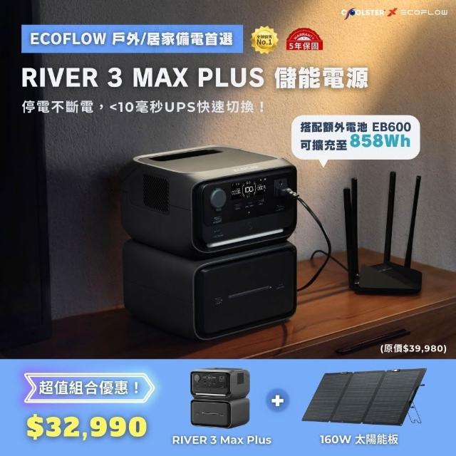 ECOFLOWRIVER 3 Max Plus(RIVER 3 Plus+額外電池EB600)+160W太陽能板