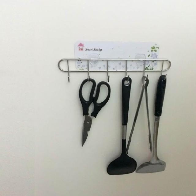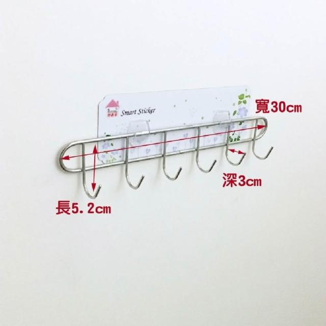 舒適家無痕掛勾 六連勾 304不鏽鋼(鍋鏟 廚具 廚房收納 無痕掛勾 台灣製造 居家收納)