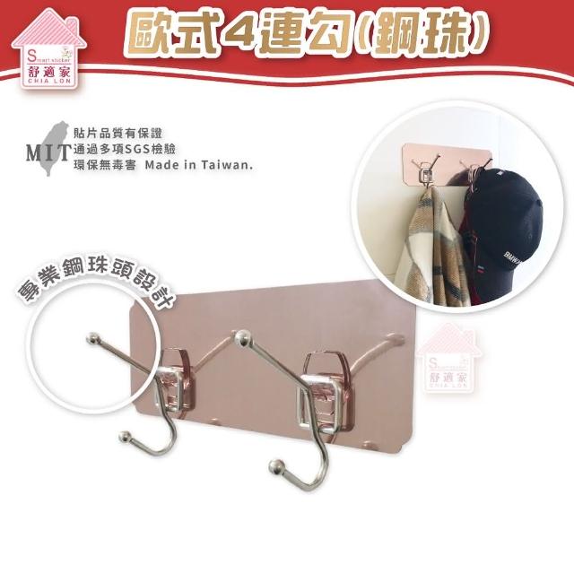 舒適家無痕掛勾 歐式4連勾 鋼珠 304不鏽鋼(粗糙牆面可貼 免釘 免鑽 居家收納 台灣製造)