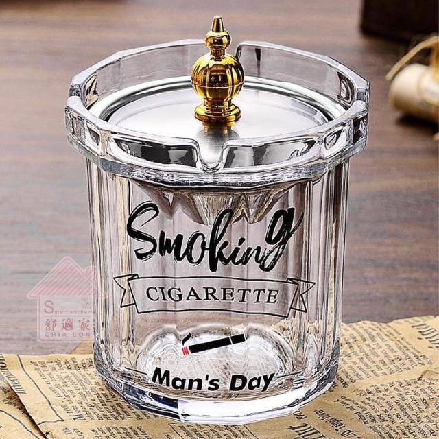 舒適家防飛菸灰缸 玻璃菸灰缸 創意煙灰缸 不鏽鋼蓋 煙灰缸 台灣出貨