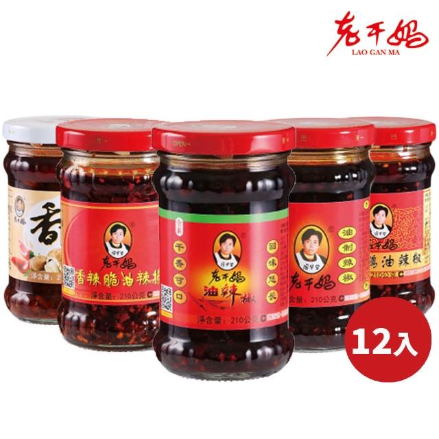 老干媽12入 辣椒醬210g(香辣脆/油辣椒/風味豆豉/香菇/風味雞油)_官方公司貨