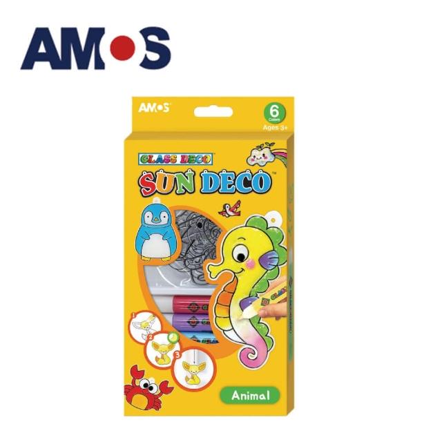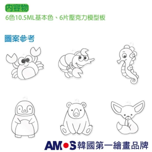 AMOS 阿摩司韓國原裝 6色動物主題模型版DIY玻璃彩繪組