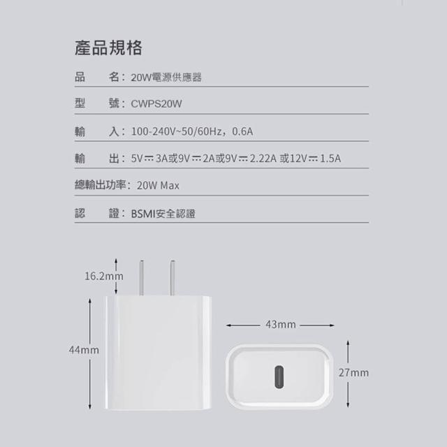 CW20W充電器(PD快充頭 Type C充電頭 Usb豆腐頭 插頭 適用iPhone蘋果三星小米)