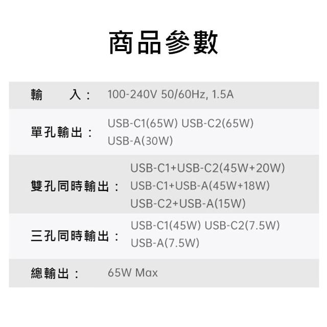 CW65W氮化鎵GaN充電器(PD快充頭 Type C充電頭 USB筆電快充 插頭適用iPhone蘋果三星小米)