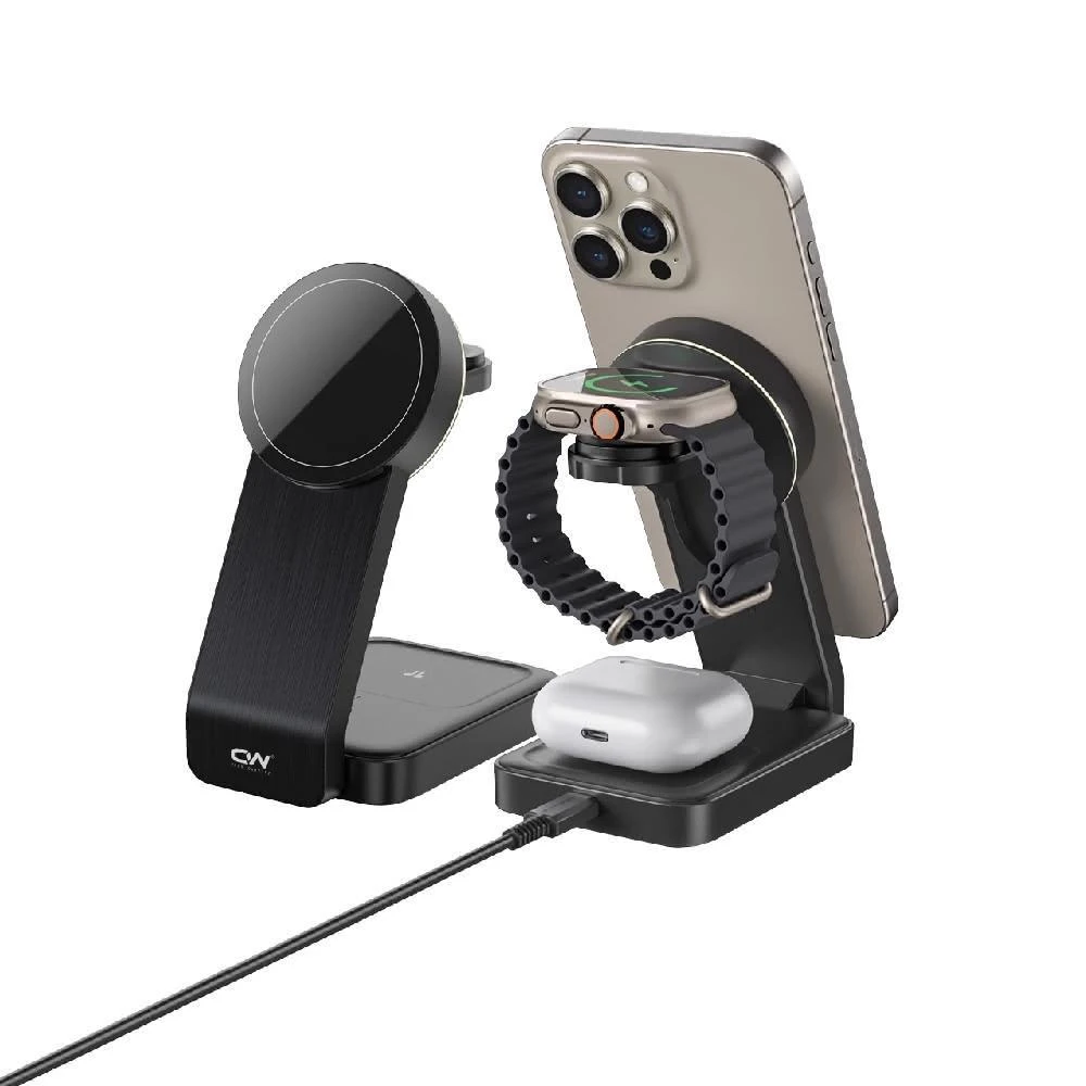 CW頂級三合一充電座 蘋果 安卓 Qi 無線充電盤 無線充電 磁吸充電盤 無線充電座 無線充電手機架 無線充電器 無線充