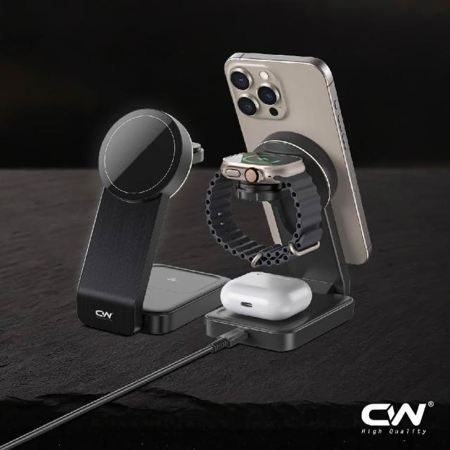 CW頂級三合一充電座 蘋果 安卓 Qi 無線充電盤 無線充電 磁吸充電盤 無線充電座 無線充電手機架 無線充電器 無線充