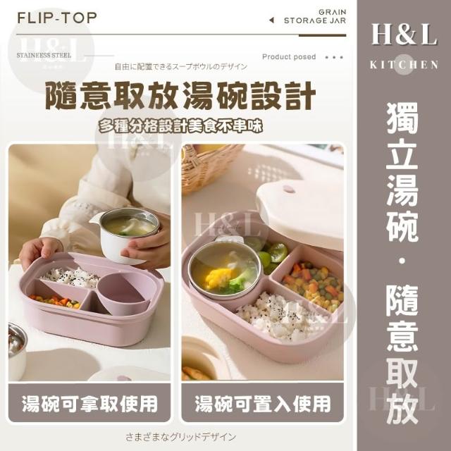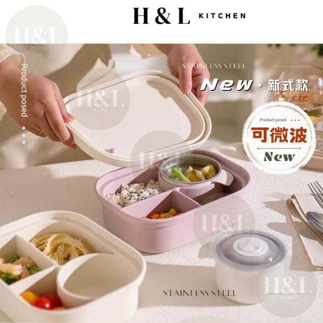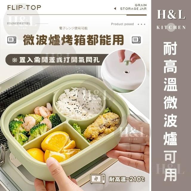H&L 匠心優廚【SGS氣閥式矽膠分隔飯盒】保鮮盒 矽膠保鮮盒 微波便當盒 便當盒 矽膠餐盒 餐盒 可微波分格餐盒 密封保鮮盒