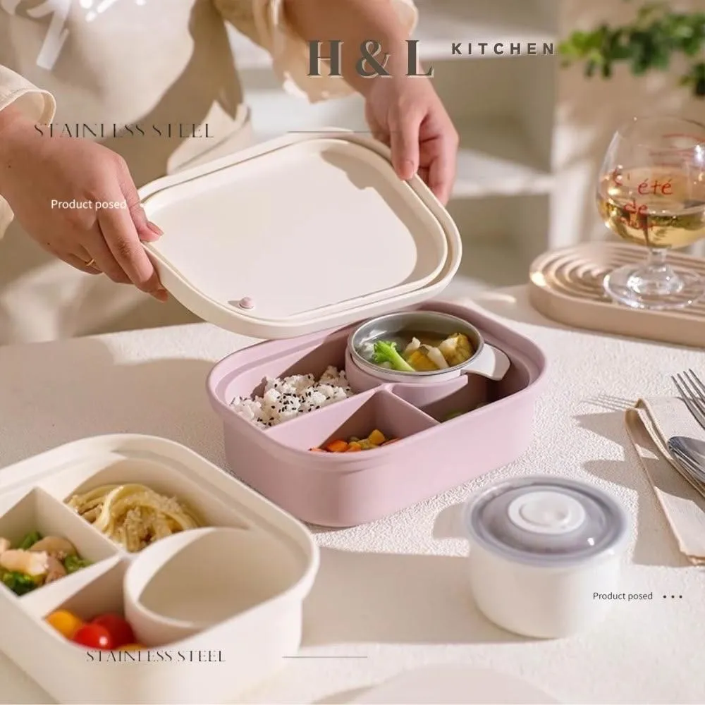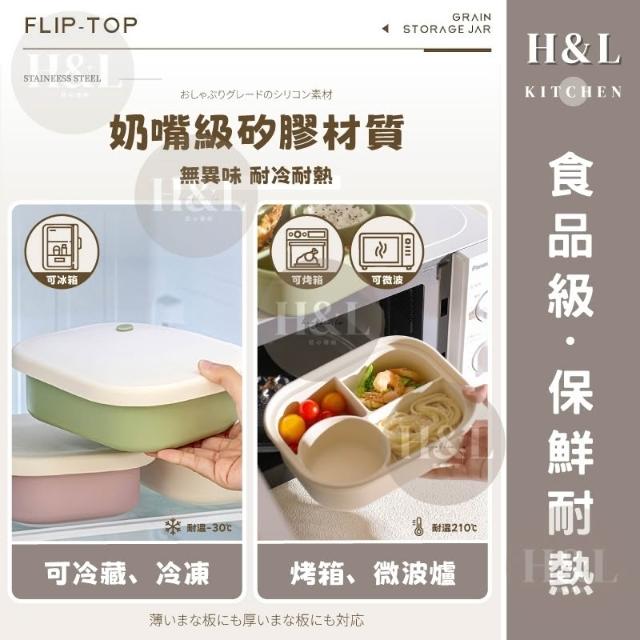 H&L 匠心優廚【SGS氣閥式矽膠分隔飯盒】保鮮盒 矽膠保鮮盒 微波便當盒 便當盒 矽膠餐盒 餐盒 可微波分格餐盒 密封保鮮盒