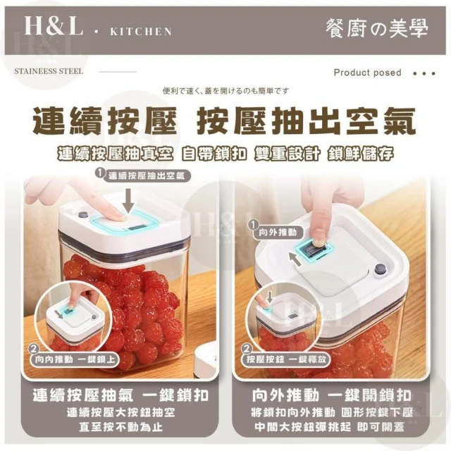 H&L 匠心優廚手動抽真空式密封罐 真空密封儲物罐 食品密封罐 密封罐 保鮮盒 儲物罐 咖啡豆密封罐 密封保鮮罐 零食罐