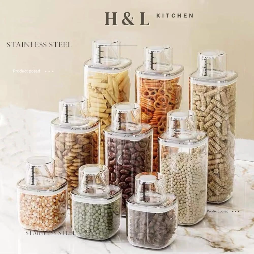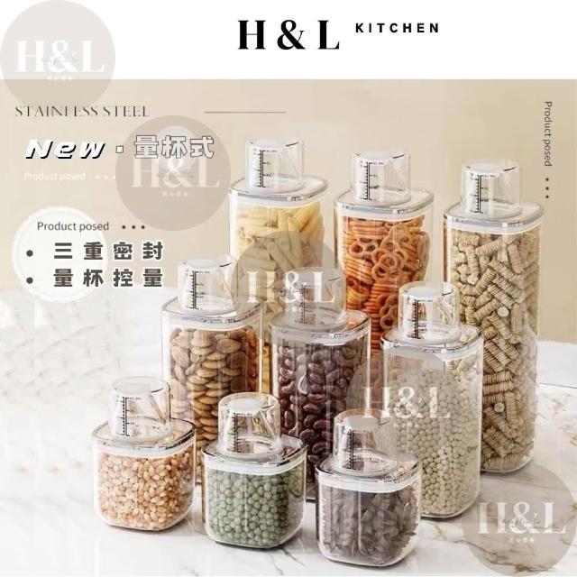H&L 匠心優廚輕奢款量杯旋扣罐 食品密封罐 密封罐 真空旋扣密封罐儲物罐 保鮮盒 儲物罐 堆疊密封儲物罐 密封保鮮罐 方形保鮮罐