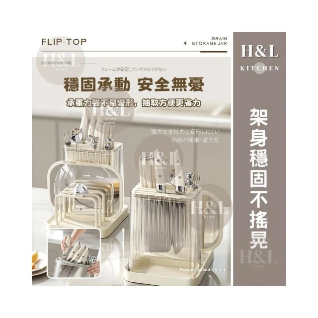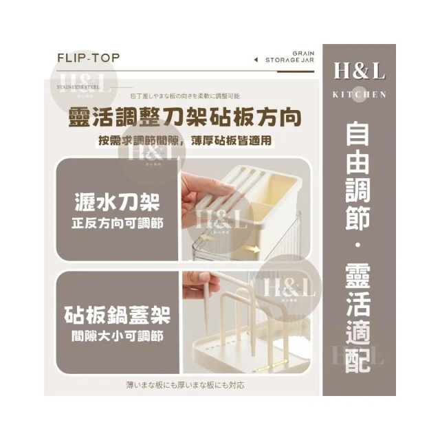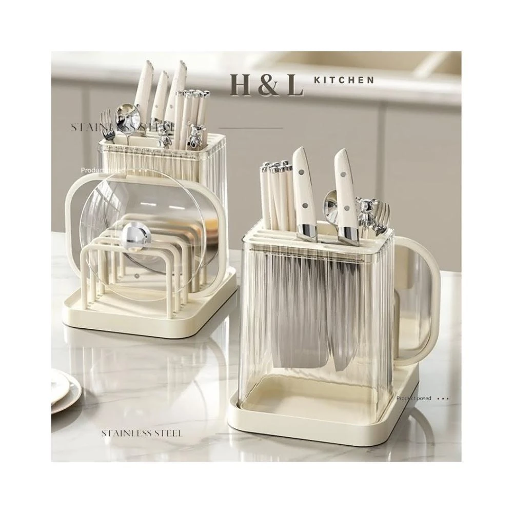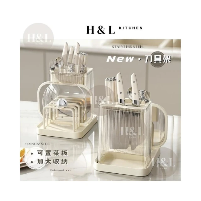 H&L 匠心優廚冰島奶色砧板&刀具架 廚房刀具架 刀具收納架 菜刀架 刀具架多功能 刀架 餐具收納 砧板架 鍋蓋架 廚房收納架