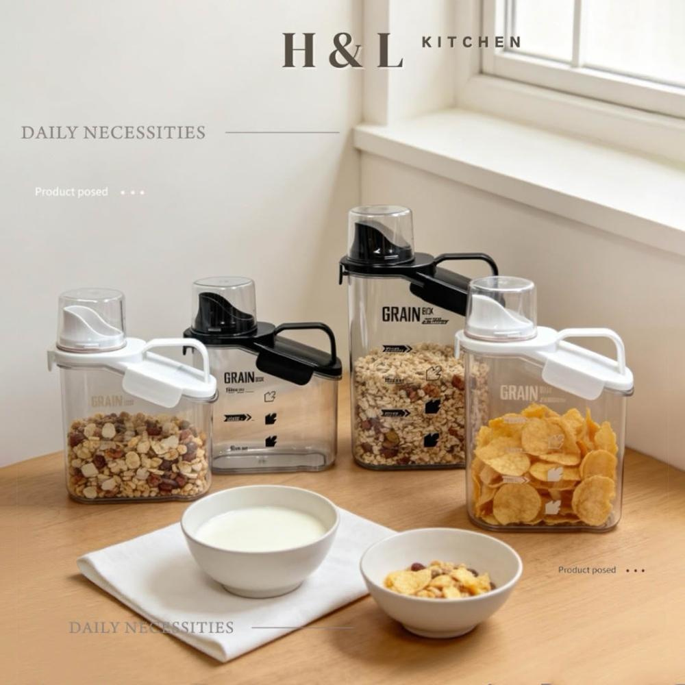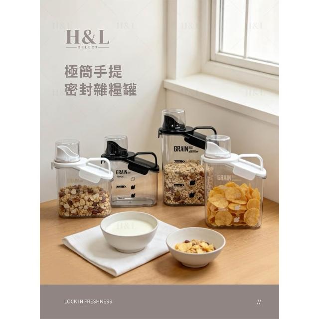 H&L 匠心優廚極簡手提密封雜糧罐 量杯密封罐 儲米桶 五穀雜糧 密封罐 收納罐 米桶 儲物罐 保鮮罐 貓糧 大米桶 密封桶