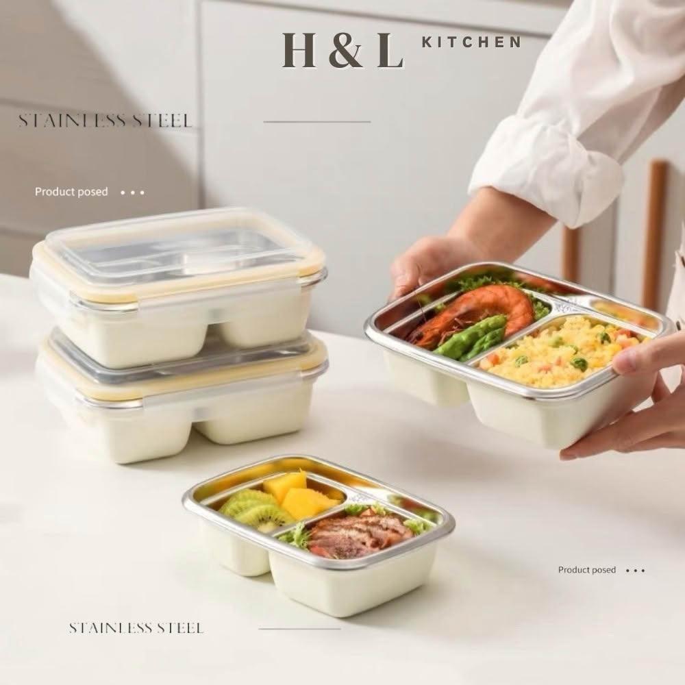 H&L 匠心優廚可微波不鏽鋼分格餐盒 不鏽鋼便當盒 雙層餐盒 分隔便當盒 餐盒 飯盒 保鮮盒 學生飯盒 分隔可蒸便當盒