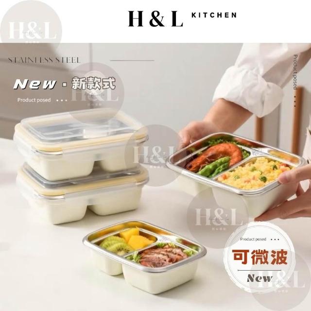 H&L 匠心優廚可微波不鏽鋼分格餐盒 不鏽鋼便當盒 雙層餐盒 分隔便當盒 餐盒 飯盒 保鮮盒 學生飯盒 分隔可蒸便當盒