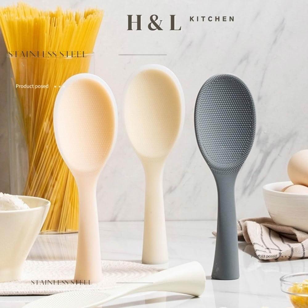 H&L 匠心優廚可站立式全矽膠飯勺 不鏽鋼飯匙 矽膠飯勺 湯勺 鍋勺 不沾黏飯勺 站立式飯勺 飯鏟 直立式飯勺 盛飯舀 飯鍋匙 飯瓢