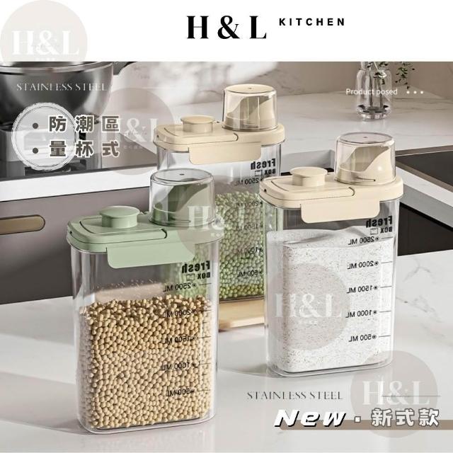 H&L 匠心優廚2025全新升級PET旋扣斜口式儲米桶 量杯密封罐 密封罐 防潮罐 五穀雜糧罐 收納罐 雜糧罐 米桶 飼料密封桶