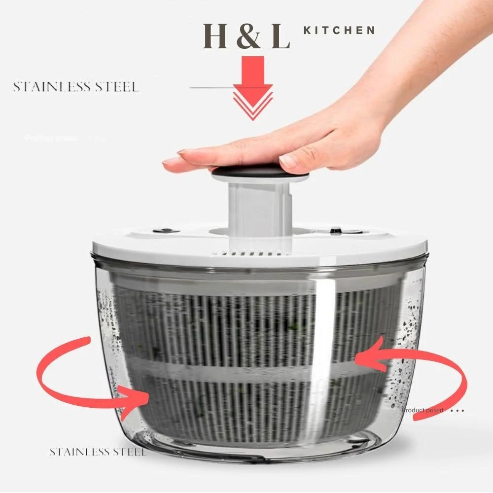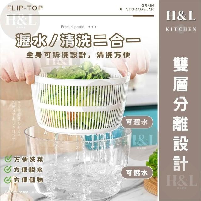 H&L 匠心優廚一鍵按壓蔬菜脫水器 蔬菜脫水器 蔬果脫水器 3L大容量 10秒脫水 洗菜籃 瀝水籃 洗菜瀝水盆 蔬果脫水 沙拉盆