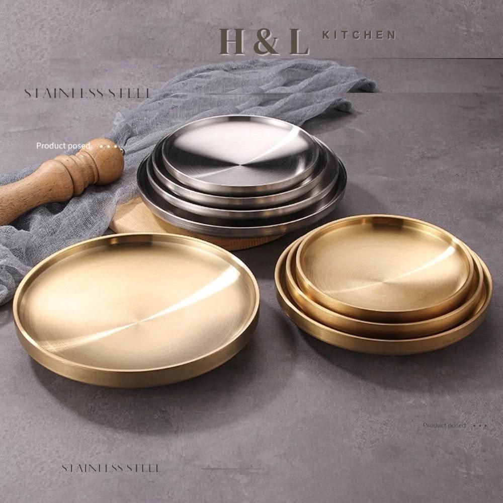 H&L 匠心優廚新日式超厚實不鏽鋼餐盤 不鏽鋼圓盤 不鏽鋼盤 圓盤 餐盤 碟子 料理盤子 水果盤 烤肉盤 淺盤 蒸盤 陶瓷餐盤 碗盤