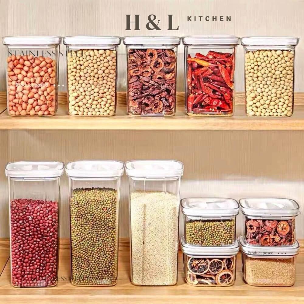H&L 匠心優廚食品密封罐 真空旋扣密封罐儲物罐 保鮮盒 儲物罐 堆疊密封儲物罐 密封保鮮罐 方形保鮮罐 零食罐 調味罐 收納罐